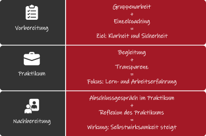 DeWia verbindet individuelles Coaching und angepasste Gruppenmodule mit einem Praktikum als Brücke in Beschäftigung – bei flexiblem Start und laufendem Einstieg.